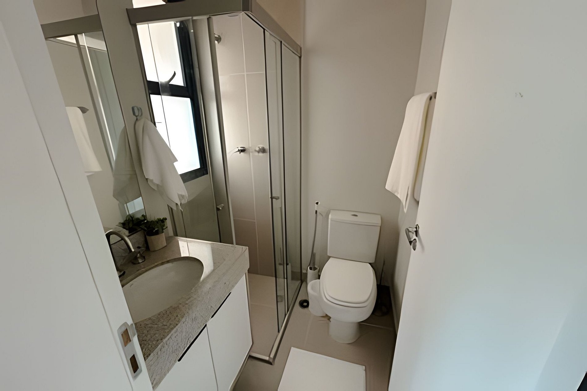 The bathroom is spacious and well lit, ensuring comfort and practicality throughout your stay.