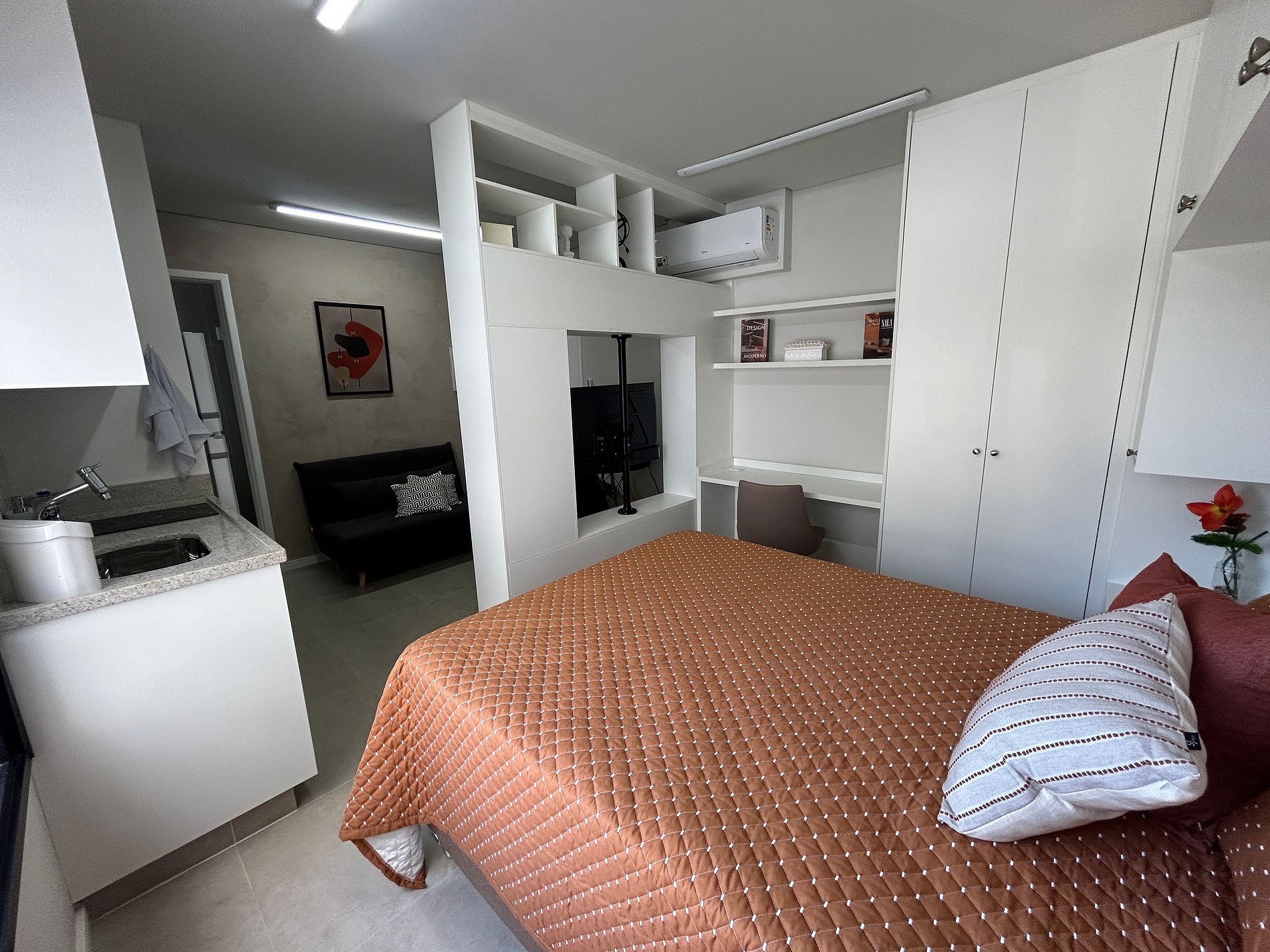 Com um layout bem planejado, o estúdio oferece ambientes integrados e versáteis, perfeitos tanto para relaxar quanto para trabalhar.