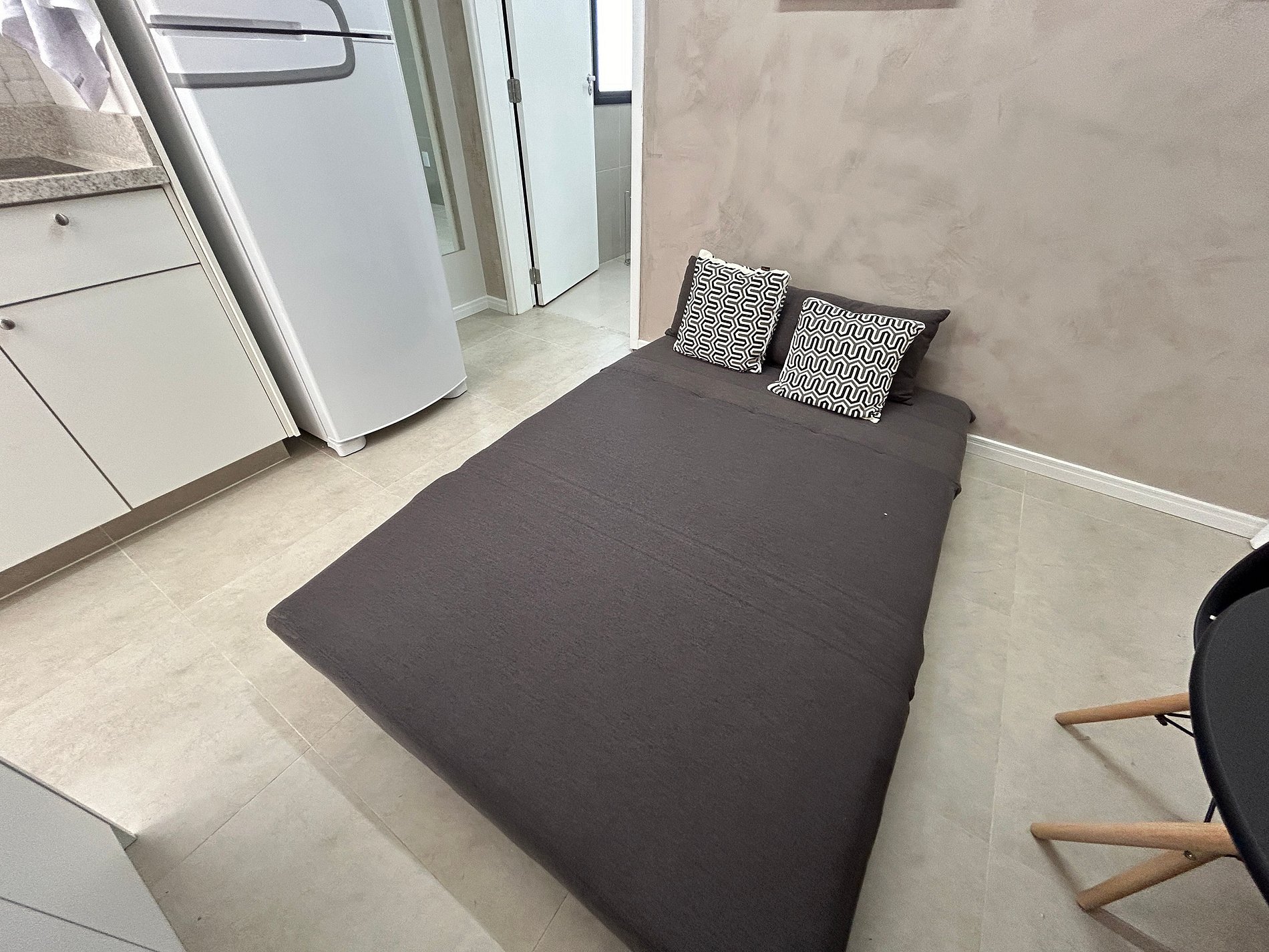 Com um layout bem planejado, o estúdio oferece ambientes integrados e versáteis, perfeitos tanto para relaxar quanto para trabalhar.