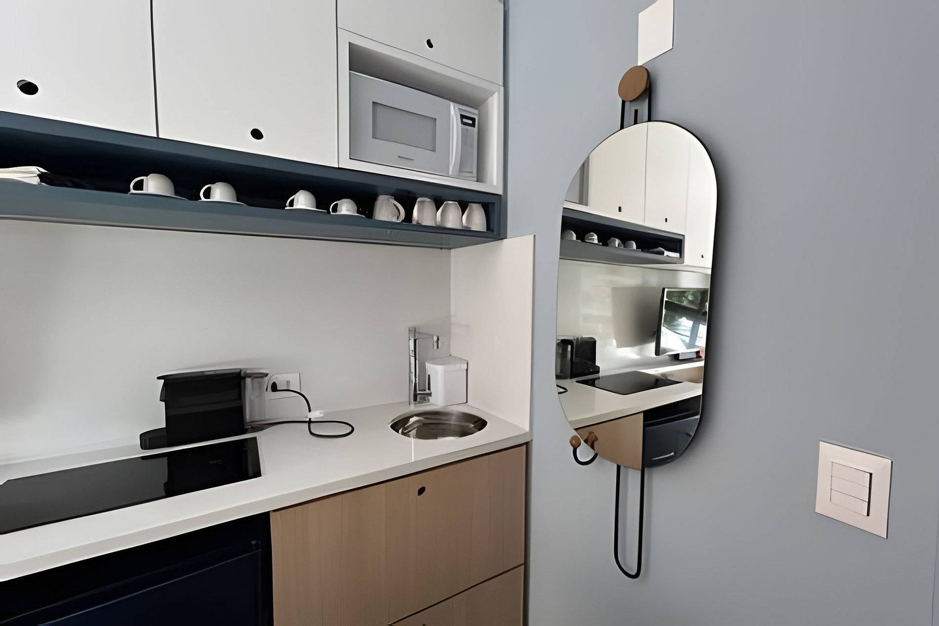 Bem-vindo ao seu studio aconchegante e funcional em São Paulo! A cama retrátil revela um sofá, otimizando o espaço para relaxar ou trabalhar.