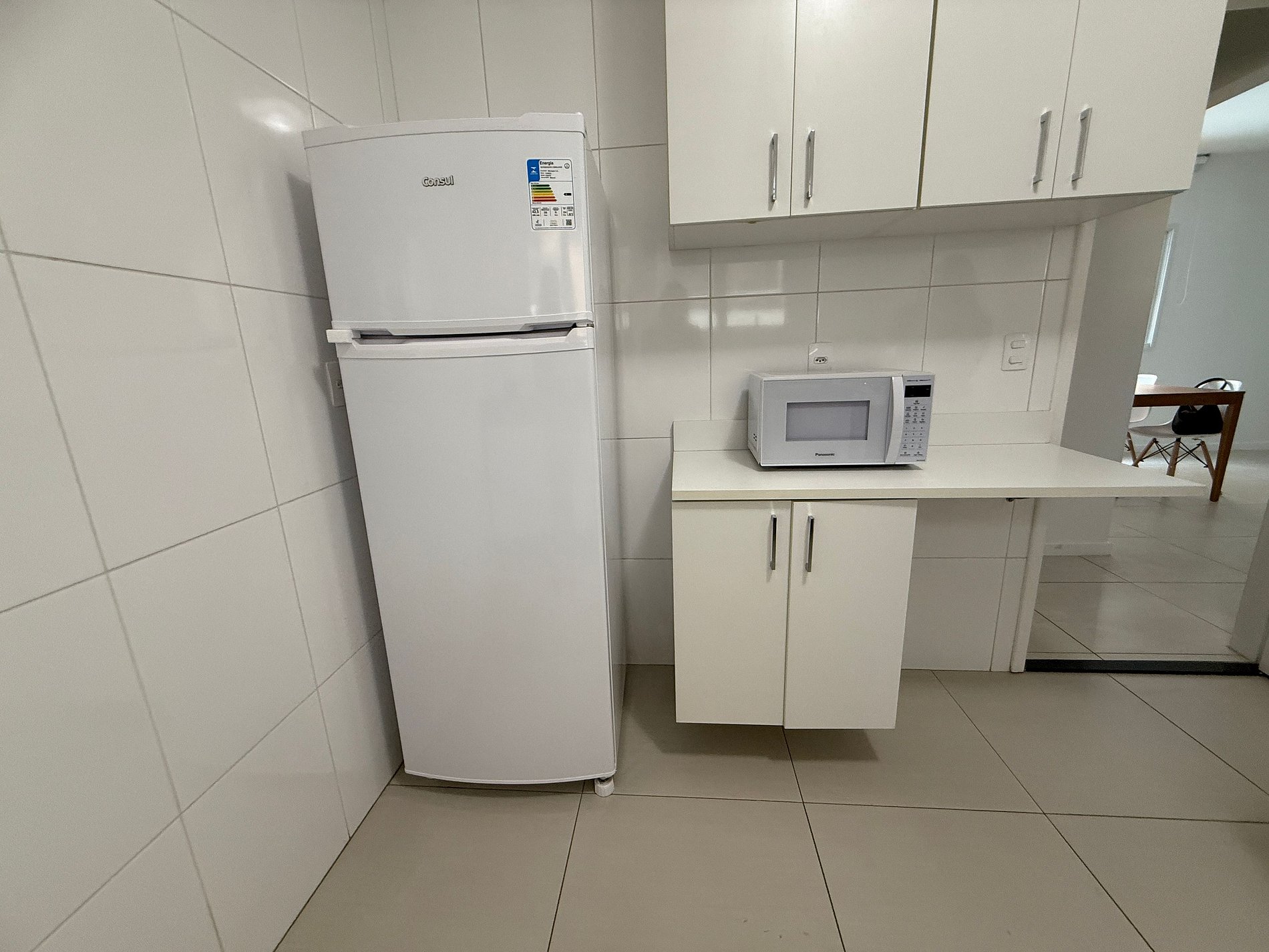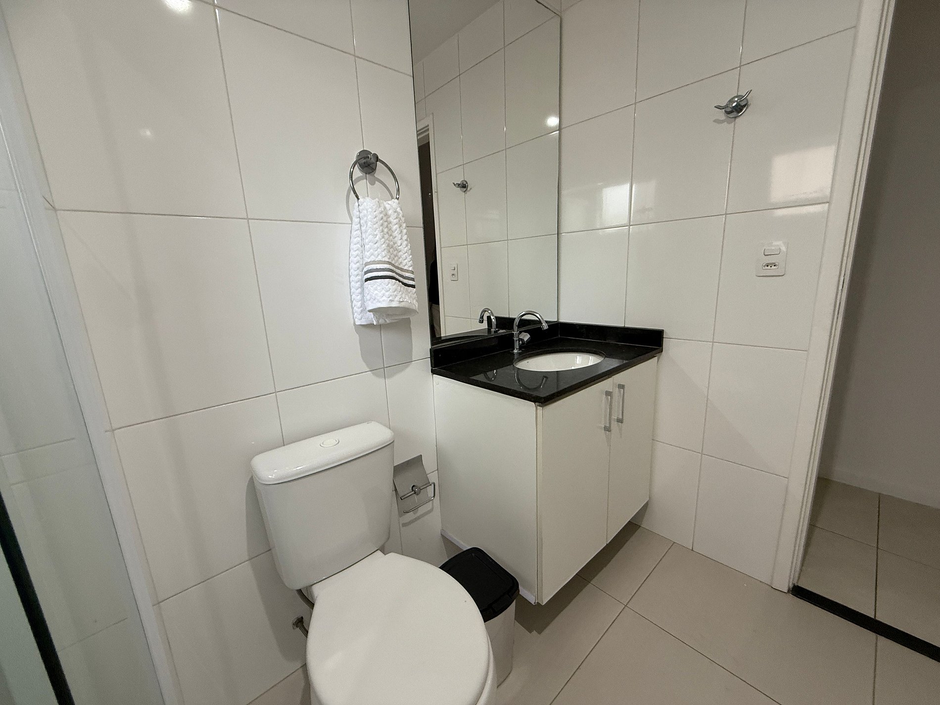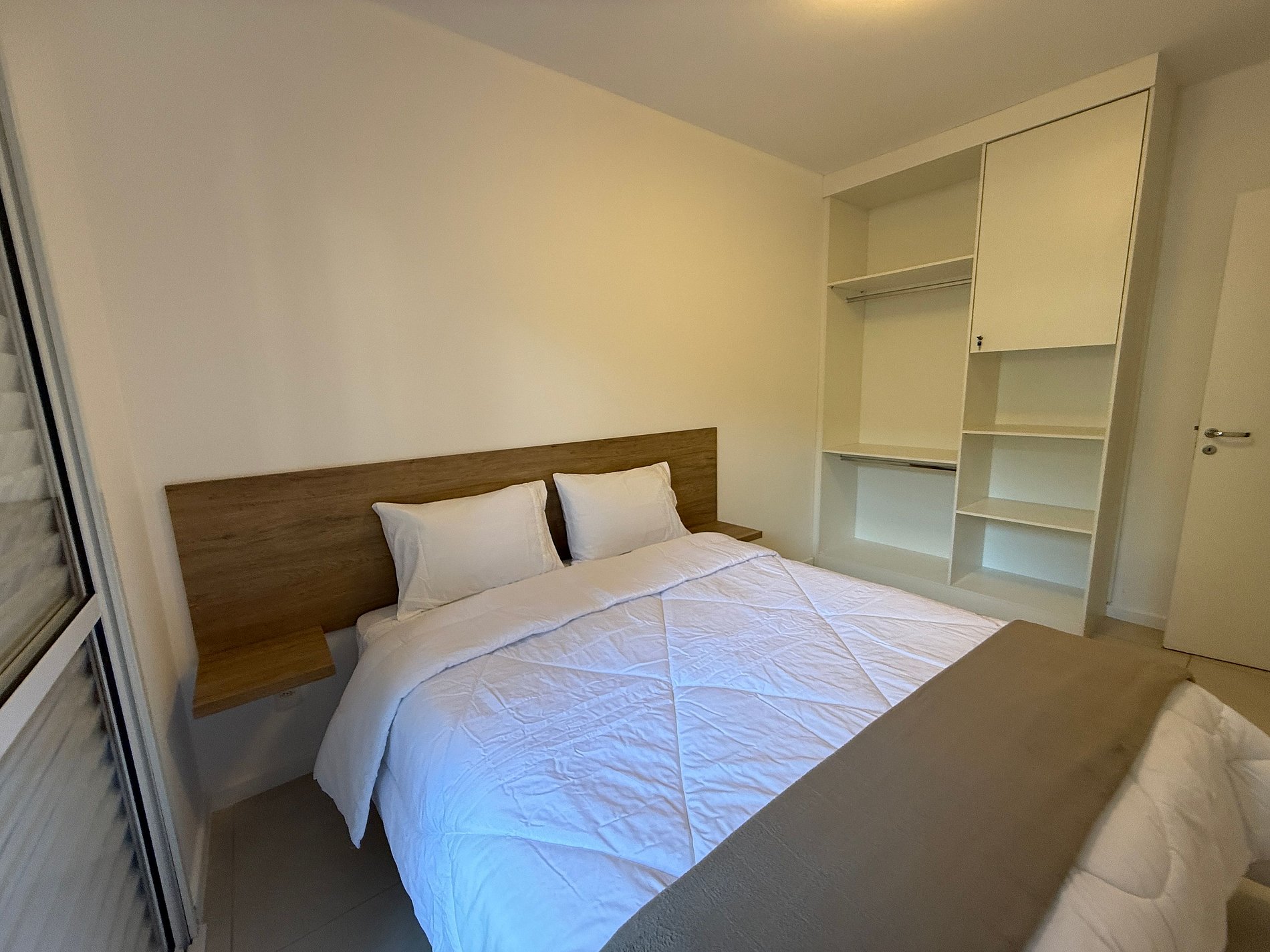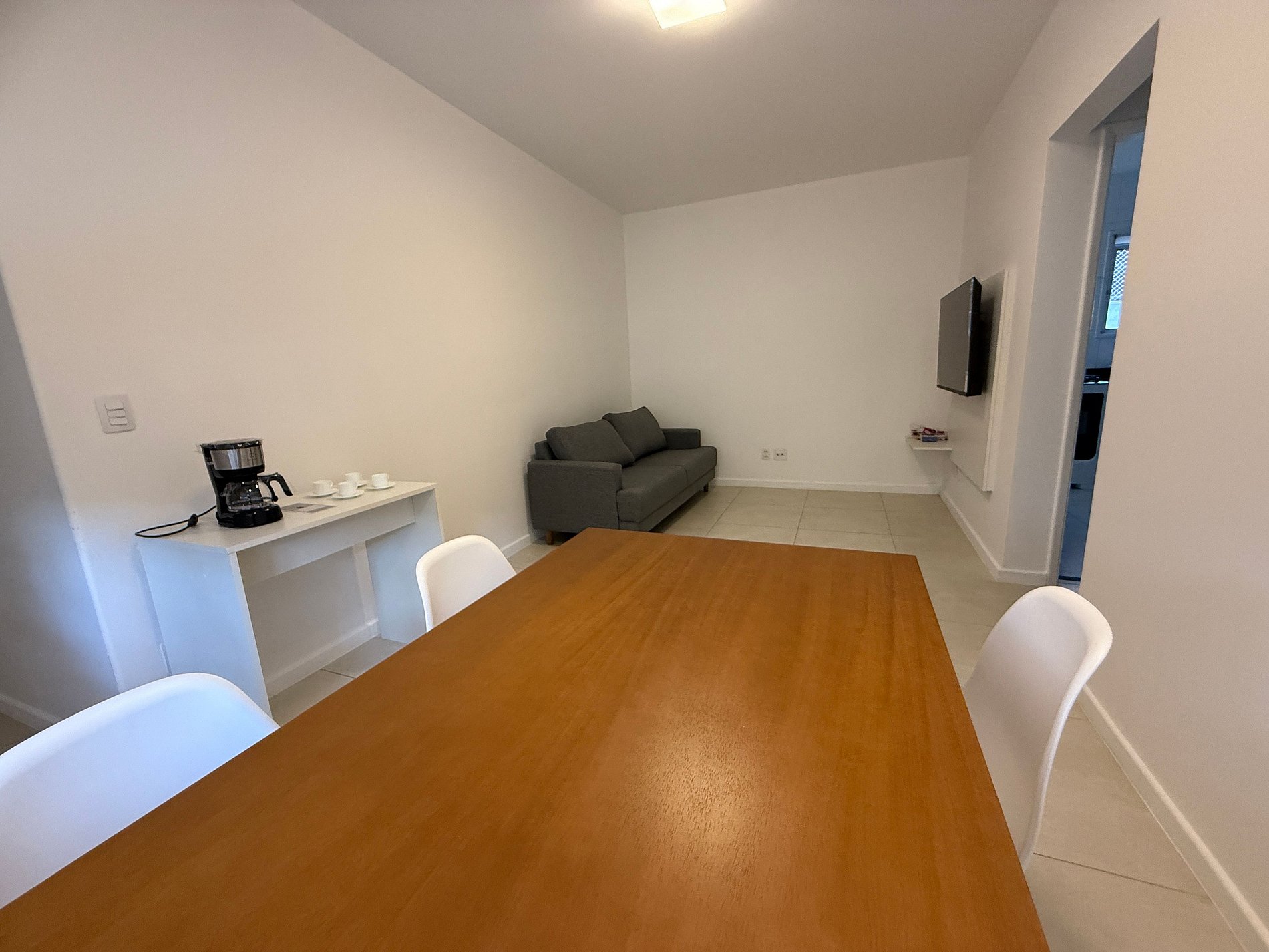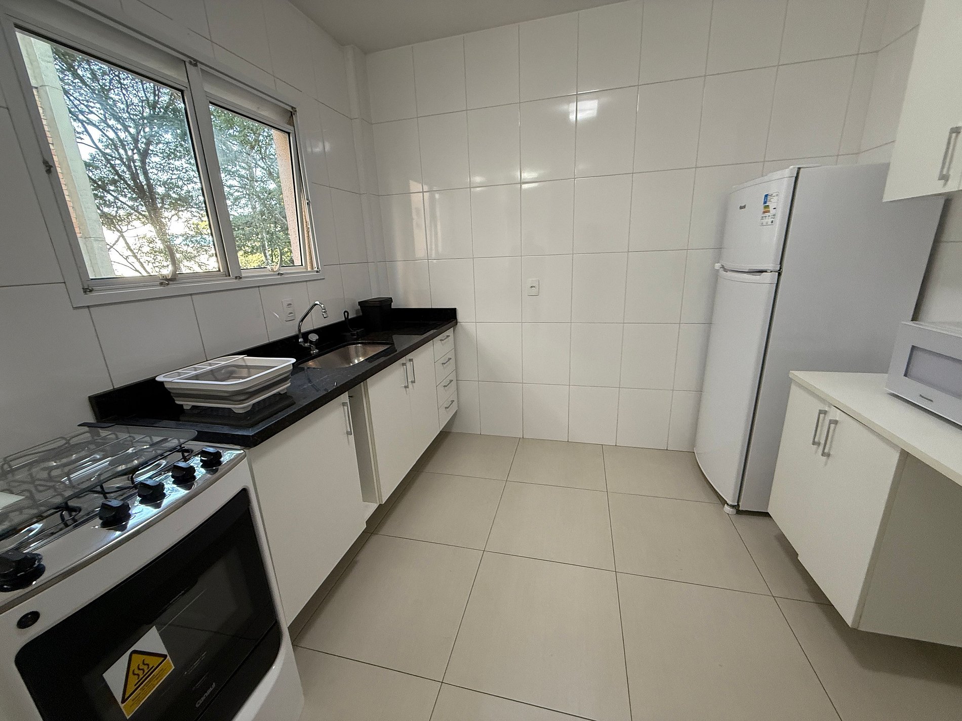 O apartamento conta com uma sala aconchegante com sofá, perfeita para relaxar, assistir TV ou trabalhar com tranquilidade. A cozinha está totalmente equipada com fogão, geladeira, micro-ondas, utensílios básicos e uma mesa para refeições, permitindo que você prepare desde um lanche rápido até uma refeição completa. Os dois quartos são bem iluminados e arejados, com camas confortáveis e armários para guardar seus pertences. O banheiro é funcional, com chuveiro quente e boa pressão de água.