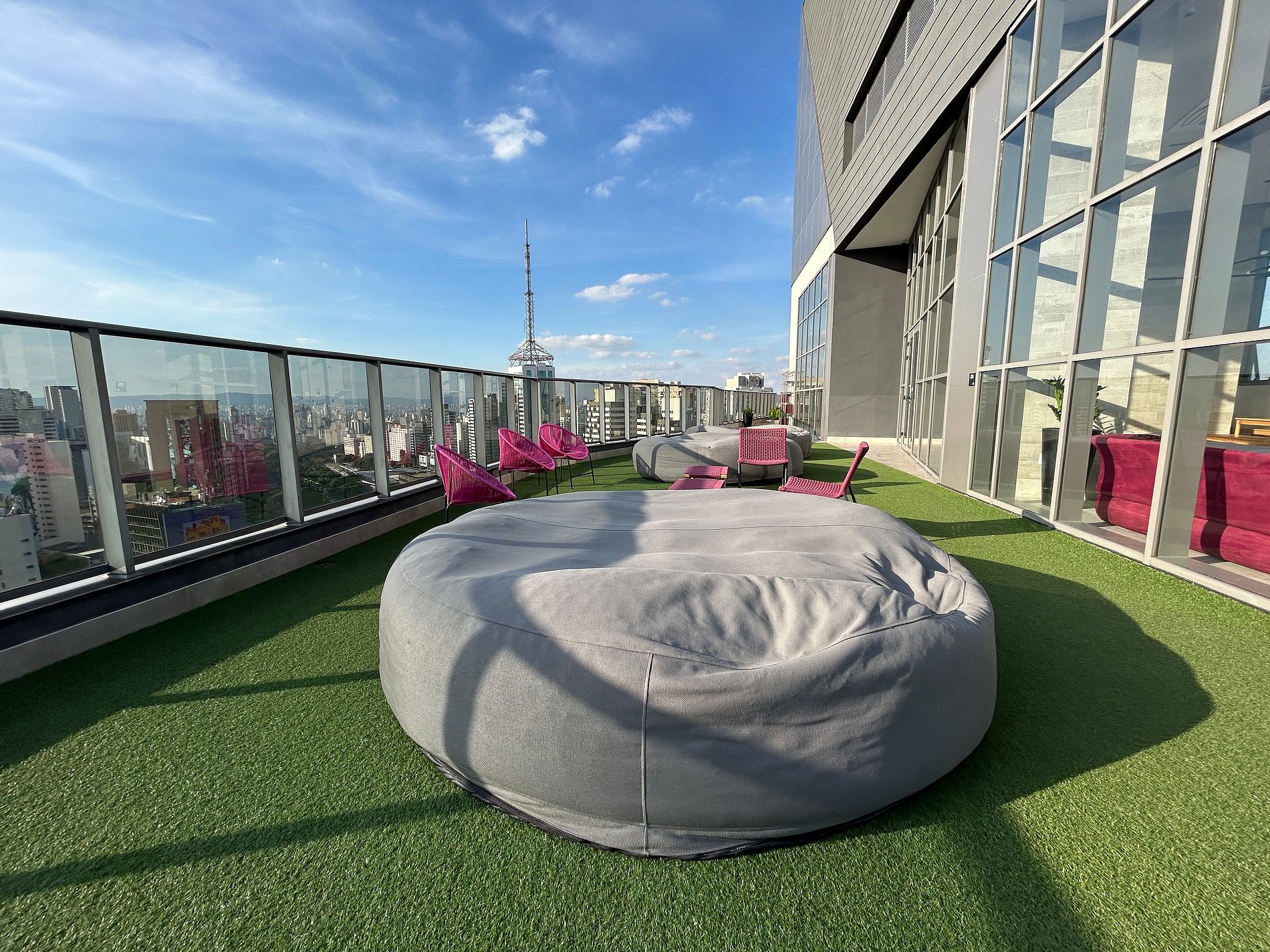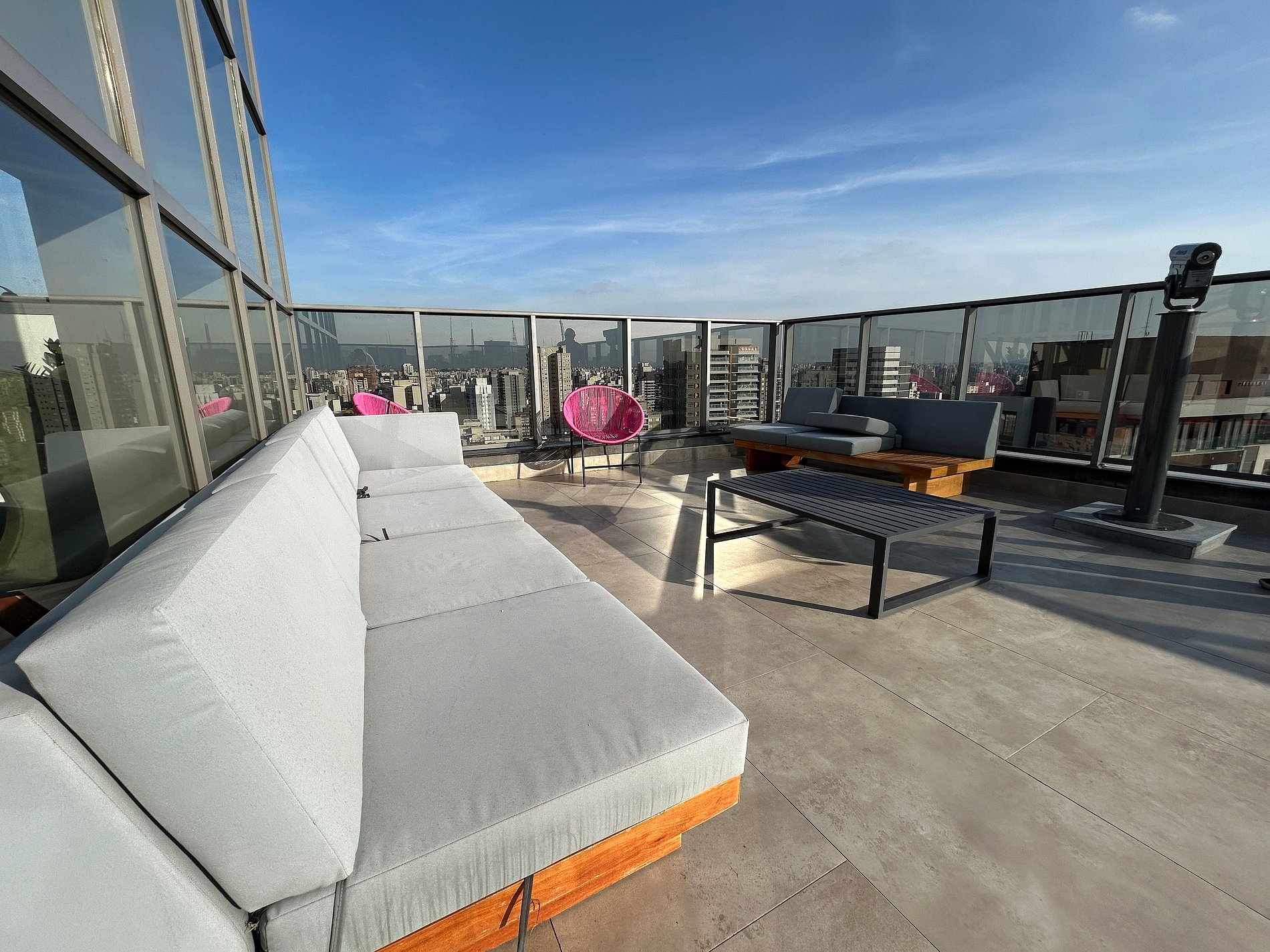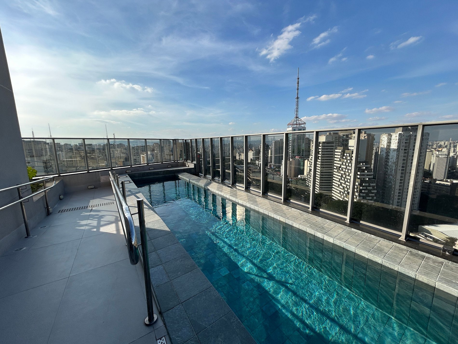 Infraestrutura Completa: O On Paulista conta com portaria 24 horas, elevadores, academia, piscina com borda infinita, salão de festas, lavanderia compartilhada, áreas de coworking e rooftop lounge com vista panorâmica da cidade.